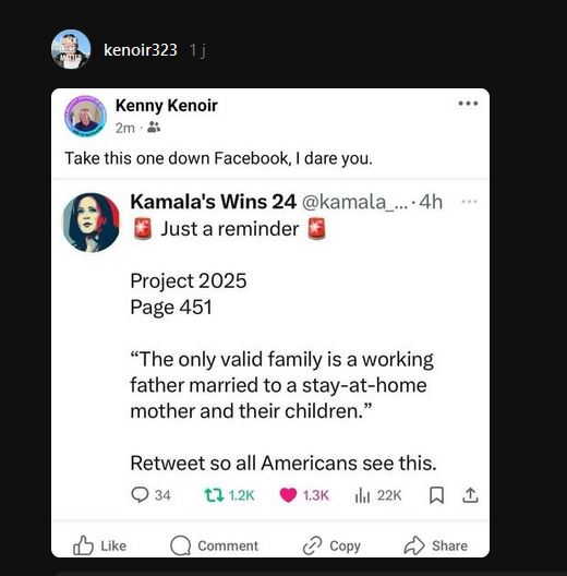 Does Project 2025 say, "The only valid family is a working father married to a stay-at-home mother and their children"? No, that's not true: Nowhere i
