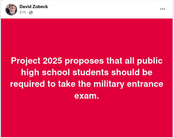 Project 2025 Would Make All Public High School Students Take Military Entrance Exam?