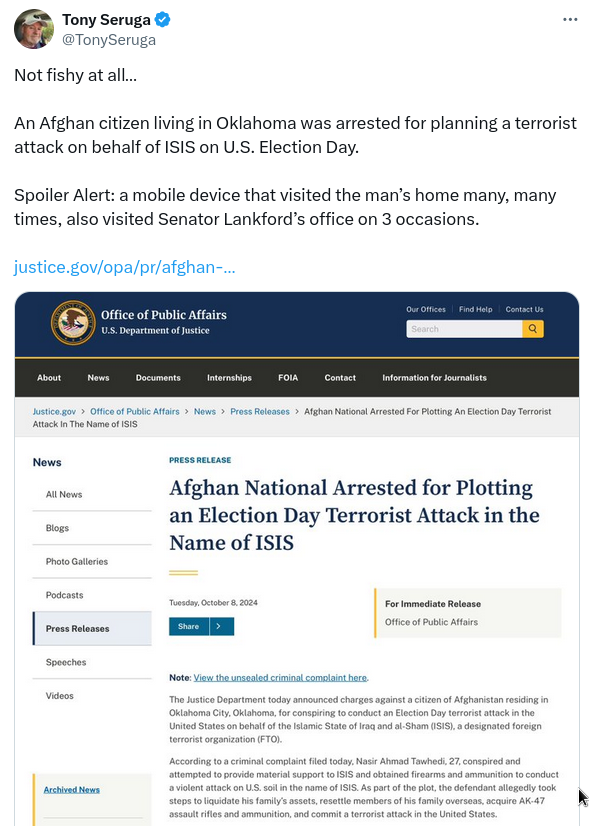 Public Records Do NOT Mention 'Mobile Device' That Supposedly 'Visited' House Of Suspect In ISIS Election Day Plot, Office Of US Senator