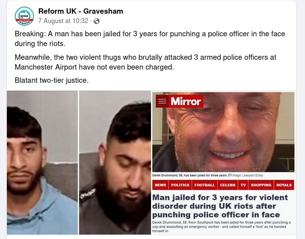 Rapid sentencing of person involved in Southport, U.K. riot does not prove two-tier policing