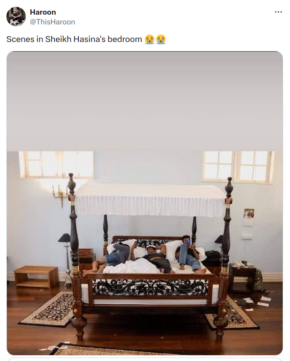 Real Photo of Protesters Relaxing on Bangladeshi Prime Minister Sheikh Hasina's Bed?