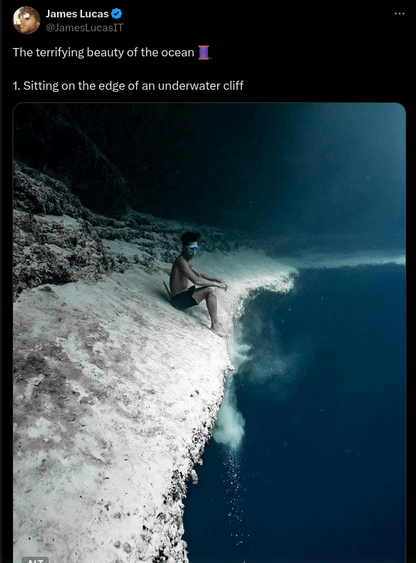 Real Pic of Man Sitting on Edge of 'Underwater Cliff'?