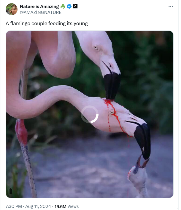 On Aug. 11, 2024, an X user posted a video purporting to show a pair of adult flamingos feeding a chick. In the video, one of the adult flamingos...