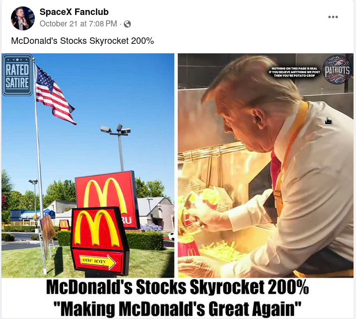 Report McDonald's Stock 'Skyrocketed' After Trump Visited PA Location Originated as 'Satire'