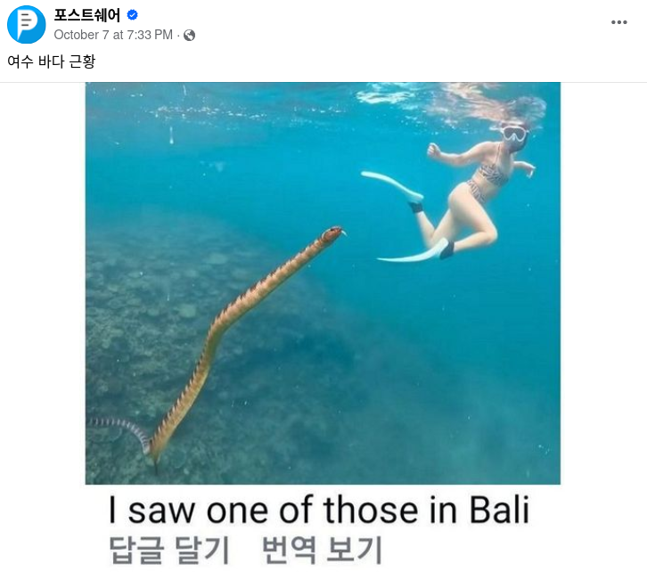 Sea snake image taken from diving school's post about Malaysia, not South Korea