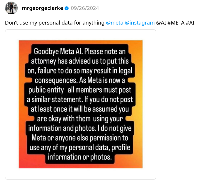 Sharing this statement will not prevent Meta AI from collecting your data