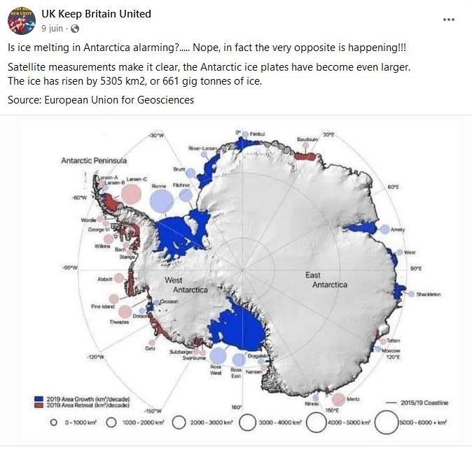 A diagram from a scientific study illustrating where Antarctic ice shelves have grown or receded over a decade is being shared on social media as...