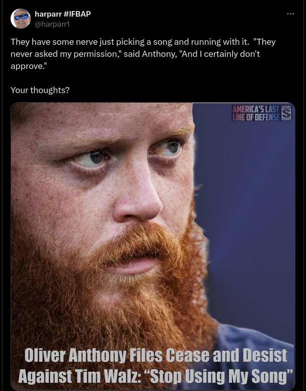 Singer Oliver Anthony Sent Cease-and-Desist Letter to Tim Walz?