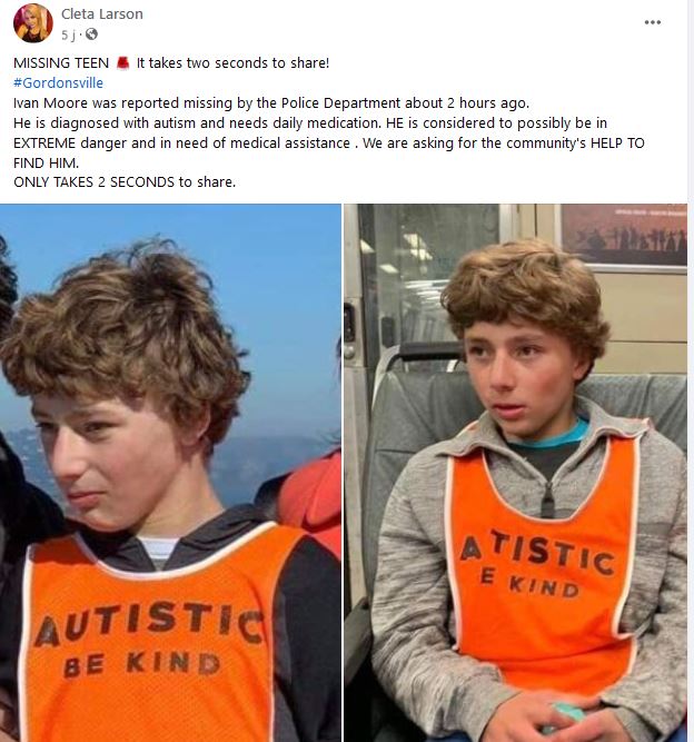 Social Media Posts Reporting Autistic Teen 'Ivan Moore' Missing Are NOT Authentic -- They're A Scam