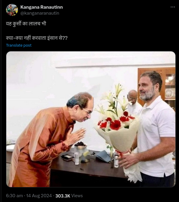 An edited photo of opposition politician Uddhav Thackeray bowing to Rahul Gandhi has circulated on social media with a false claim it showed him...