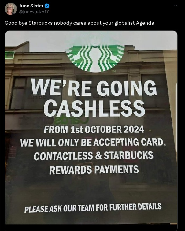 Is Starbucks going cashless in the U.K. on October 1, 2024? No, that's not true: A spokesperson told Lead Stories that Starbucks does not have a...