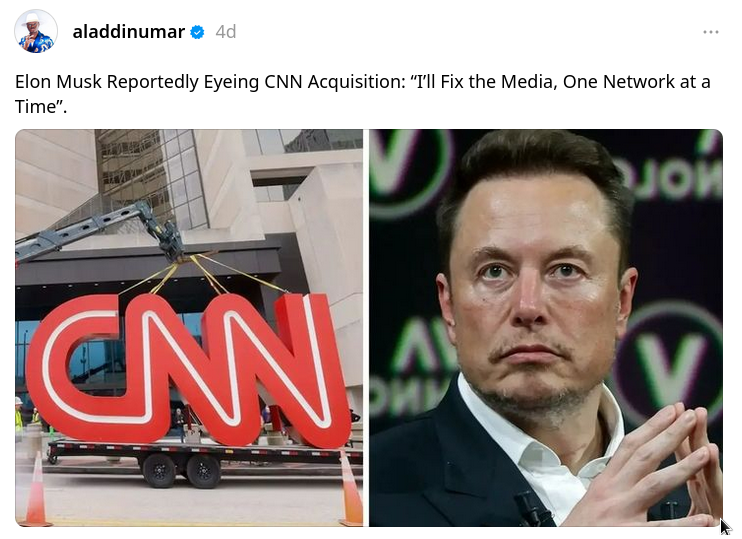 Story about Elon Musk buying CNN originated on a satire site