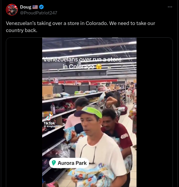 A video filmed at a supermarket in Brazil was shared online falsely captioned as showing Venezuelans storming a store in Aurora, Colorado, amid...