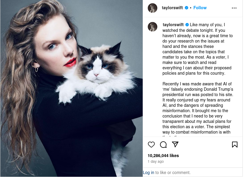 Just as her Instagram post endorsing Vice President Kamala Harris and Minnesota Gov. Tim Walz for the 2024 presidential election received a flurry...