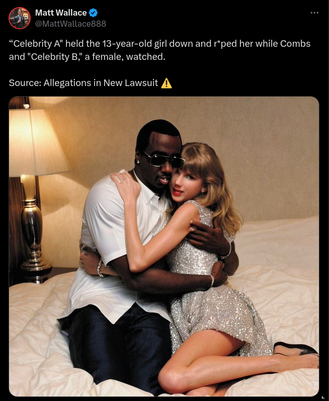 Was Taylor Swift the female celebrity witness or the accuser named in a lawsuit that said Sean "Diddy" Combs had raped a 13-year-old girl? No...