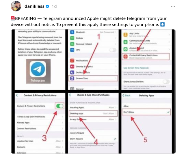 Telegram Did NOT Announce In August 2024 That Apple Might Delete App Without Notice