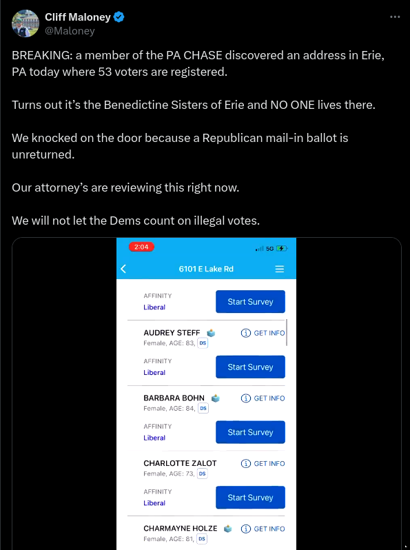 There Are NOT 53 Pennsylvania Voters Registered At Vacant Address -- Nuns Live There