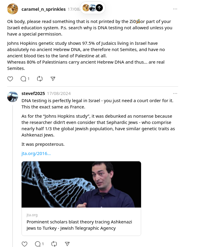 There is no Johns Hopkins study suggesting that Jews lack Hebrew DNA