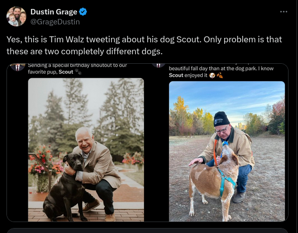 Tim Walz did not claim two different dogs as his pet Scout