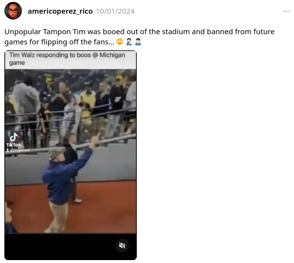 Tim Walz wasn’t banned from college football games after attending one recently; that's fake news