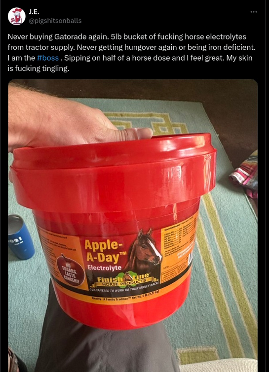 Are Apple-A-Day buckets of horse electrolytes safe for human consumption, as a post on X claimed? No, that's not true: The company that produces...