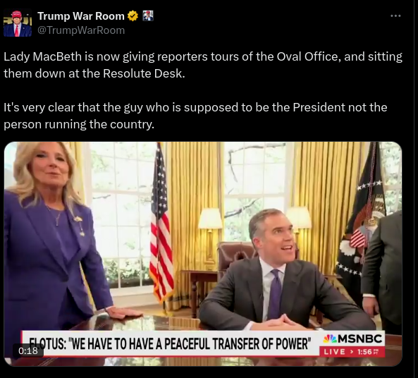 Trump Campaign Claims Jill Biden Is Giving Reporters Tours Of Oval Office, Sitting Them At Resolute Desk