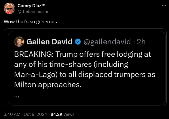 Trump Isn't Offering Free Lodging to Displaced Supporters During Hurricane Milton
