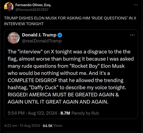 Trump post criticizing Musk after X interview is fake