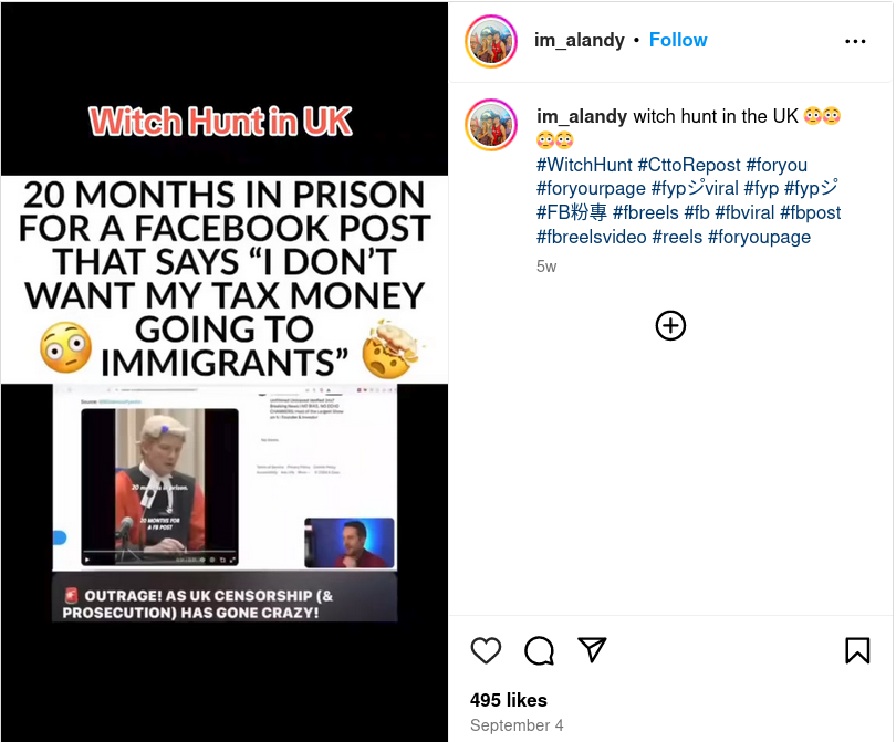 U.K. Facebook users not jailed for posts criticising tax spend on “immigrants”