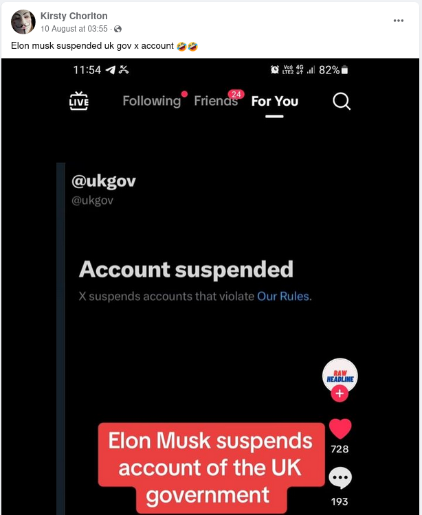 The UK Government’s X account has not been suspended