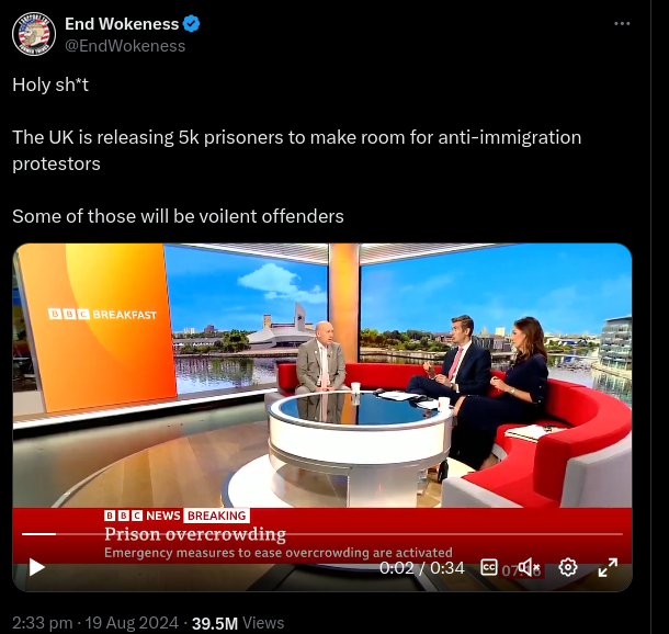 The U.K. is not releasing violent offenders to make room for people arrested amid riots