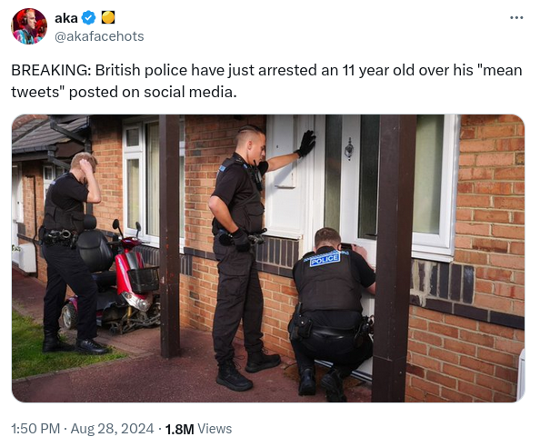 Did police in the United Kingdom arrest an 11-year-old child in August 2024 for posting "mean tweets"? No, that's not true: Authorities in...