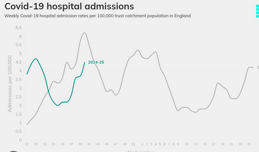 The UK Health Security Agency (UKHSA) has included several graphs depicting hospital admission rates for Covid-19, flu and respiratory syncytial...