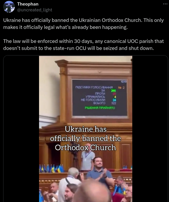 In mid-August 2024, a rumor spread on social media that Ukraine passed legislation banning the Orthodox Church in Ukraine. For instance, one X post...