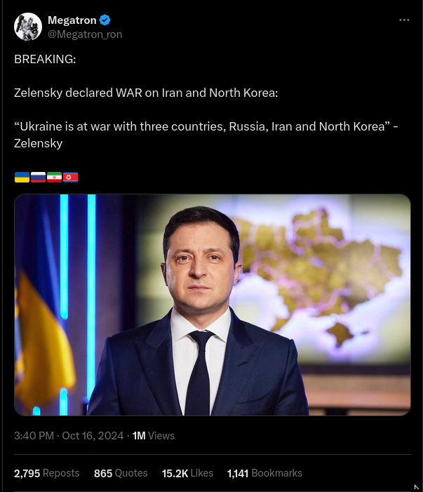 Ukrainian President Zelenskyy Had NOT 'Declared War On Iran And North Korea' As Of October 17, 2024