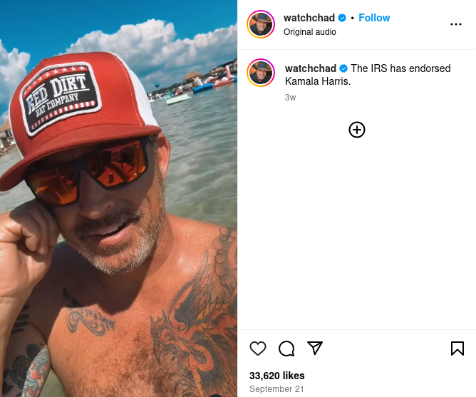 A Sept. 21 Instagram post includes a clip of a man discussing political endorsements ahead of the 2024 presidential election...