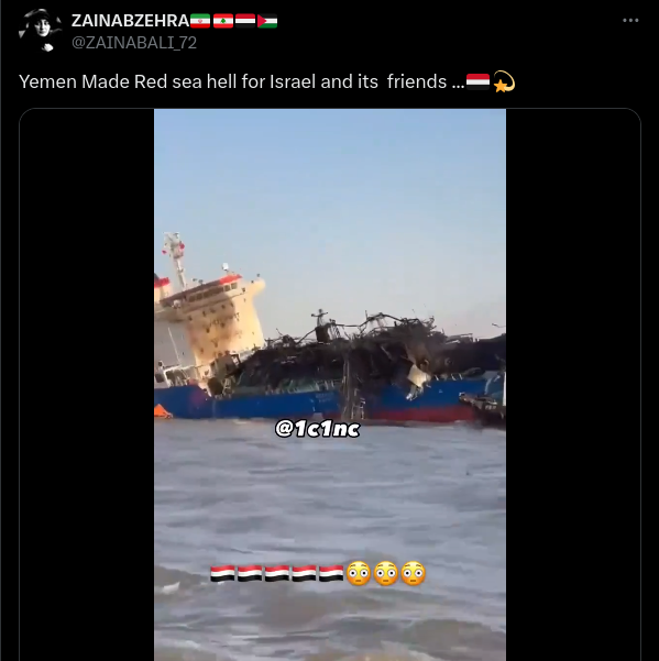 A video which supposedly shows “Red Sea hell for Israel and its friends” actually shows a South Korean tanker which exploded while sailing down...