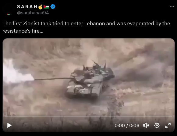 Does a viral video show an Israeli tank destroyed "by the resistance's fire" in Lebanon in October 2024? No, that's not true: The claim recycled...