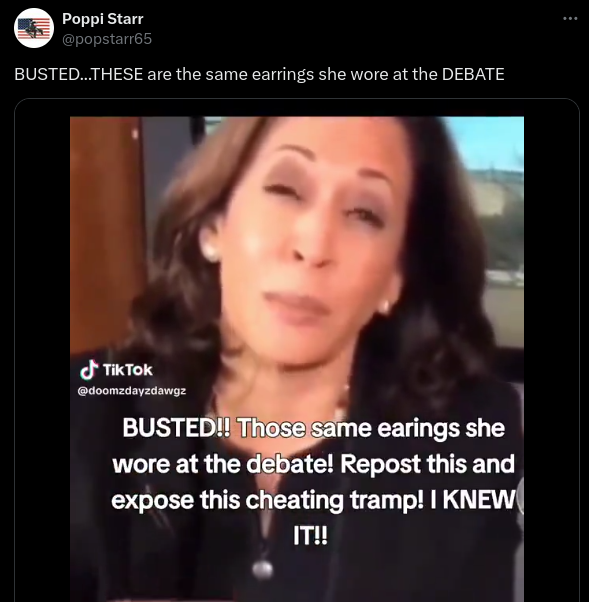 Video does not show Kamala Harris adjusting ‘earphone earrings’ prior to presidential debate