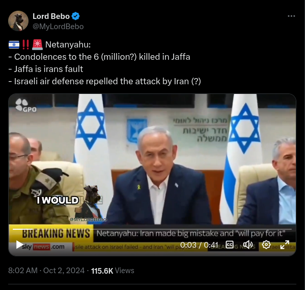 Video Does NOT Show Netanyahu Saying He Sends Condolences To 'Six Million People' Killed In October 1, 2024, Jaffa Terrorist Attack