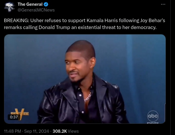 Video Does NOT Show Singer Usher Refusing To Support Kamala Harris