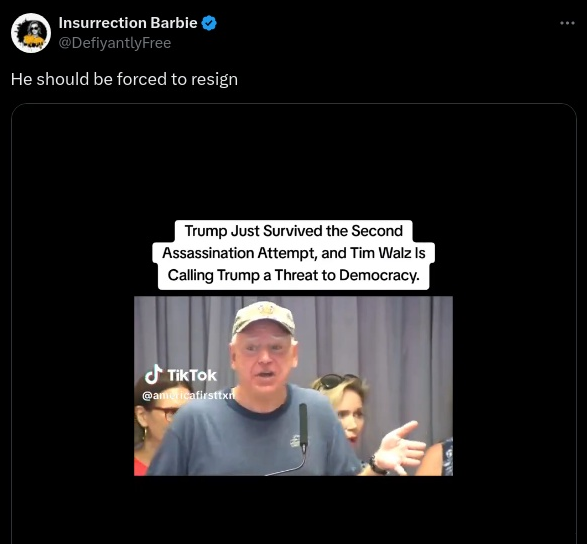 Does a video on X show Tim Walz calling Donald Trump and JD Vance "a threat to democracy" after Trump survived a second apparent assassination...