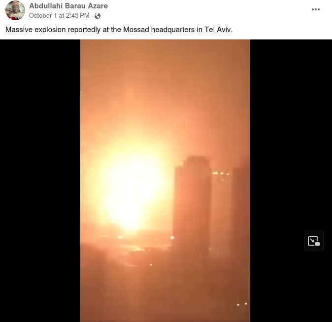 A video is being shared with false claims it shows a “huge explosion” at the headquarters of Israel’s intelligence agency Mossad in Tel Aviv...