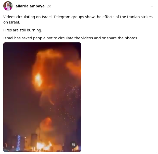 A video is being shared on Threads and Facebook with claims it shows the aftermath of Iranian missile strikes on Israel...