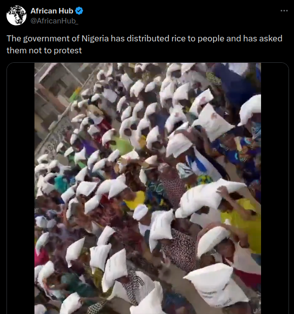 Video of Nigerians receiving rice donations is old and unrelated to protests