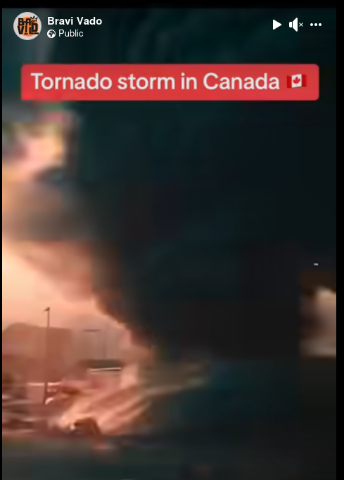 In a video spreading on social media, huge tornadoes churn through landscapes, appearing to leave swaths of destruction in their wake in … Canada?...