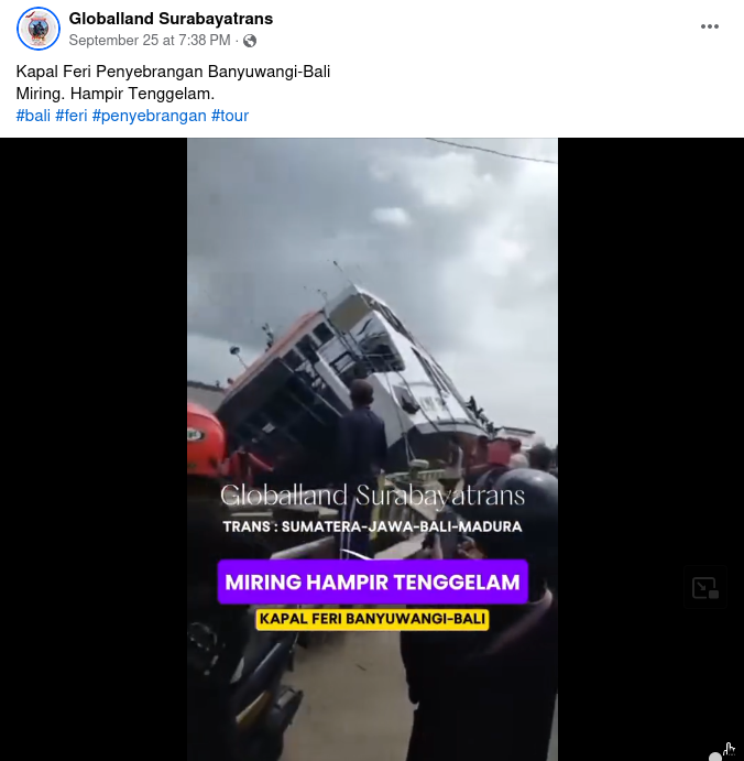 Video shows ferry capsizing in Indonesia's West Kalimantan province, not near tourist hotspot Bali