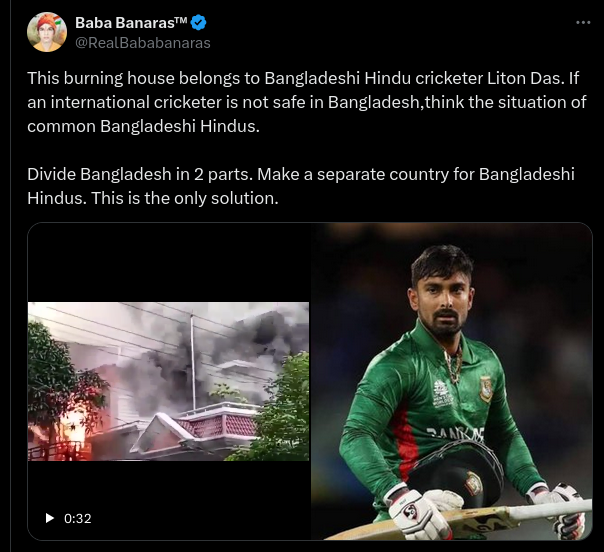 Bengali Hindu cricketer Liton Das has clarified that his home was not torched during student-led protests that toppled ex-prime minister Sheikh...