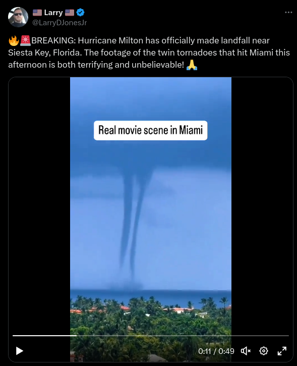 Video shows Florida waterspouts in August, not Hurricane Milton's tornadoes