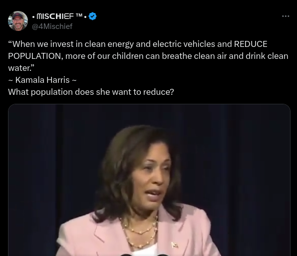 Video Shows Harris Misspeaking 'Reduce Population' When She Meant 'Reduce Pollution'